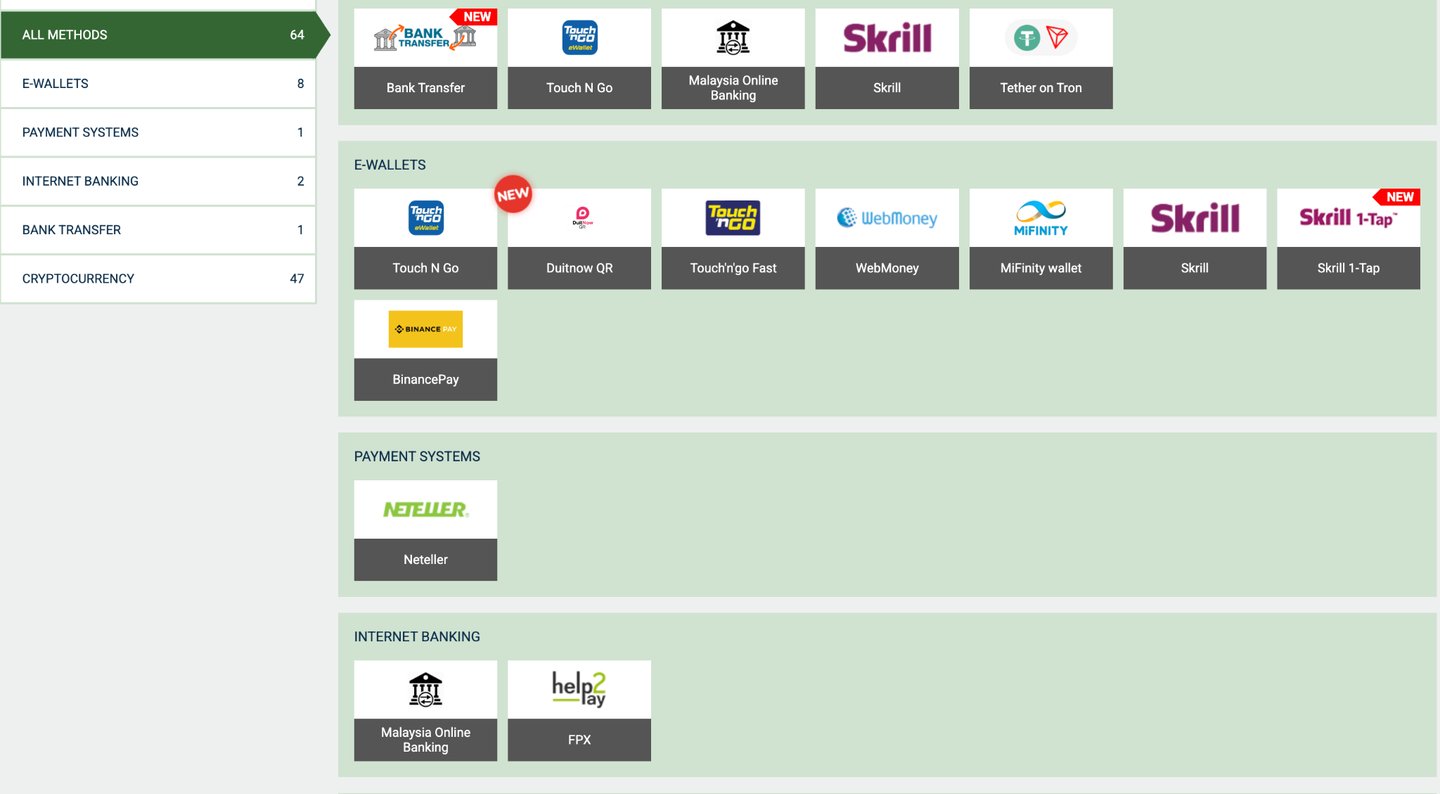 When it comes to payment methods, Malaysian players can withdraw funds using: