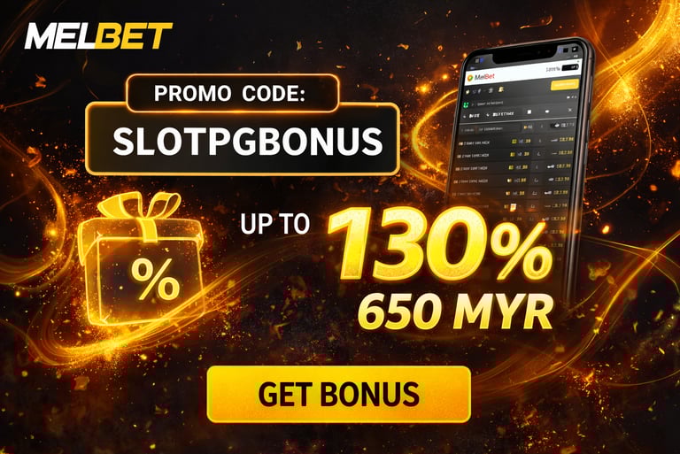 100% bonus on the first deposit. (You can boost with Melbet Promo Code [SLOTPGBONUS] and get 130% up to 650MYR